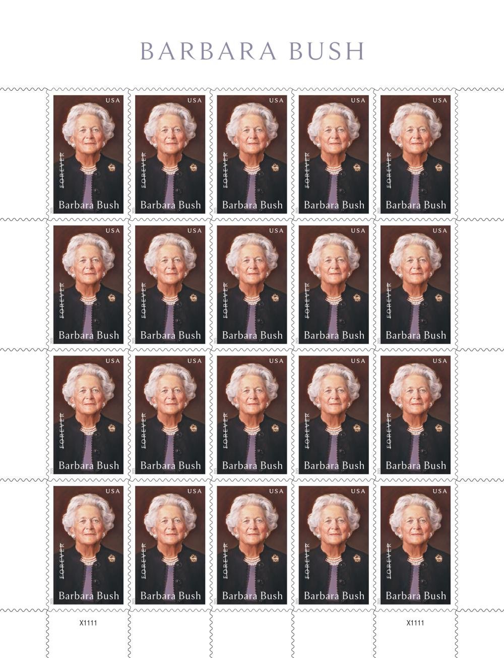 The stamp is being issued in panes of 20. As a Forever stamp, it will always be equal in value to the current First-Class Mail 1-ounce price. News of the stamp is being shared with the hashtag #BarbaraBushStamp.
