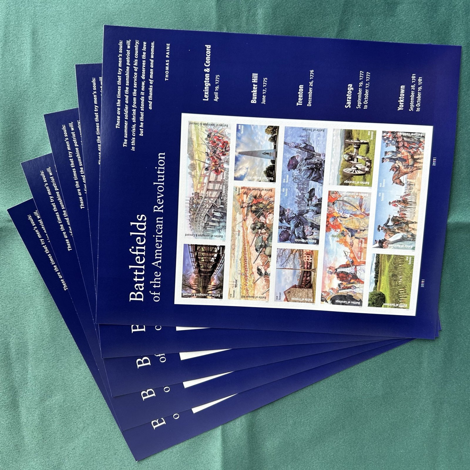 The stamps are being issued ahead of the semiquincentennial — or 250th anniversary — of the American Revolution and highlight five crucial battles in the Revolutionary War: Lexington and Concord; Bunker Hill; Trenton; Saratoga; and Yorktown.