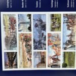 The pane dedicates a row of stamps for each battle. A stamp’s image is either a photograph linked to the site or a watercolor illustration of a battle scene.