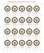 This commemorative Forever stamp honors the 250th anniversary of the United States Navy, established on October 13, 1775 by the Second Continental Congress. From its Revolutionary War origins to today, the Navy has played a vital role in safeguarding America’s freedom and projecting strength across the seas.