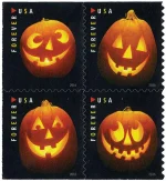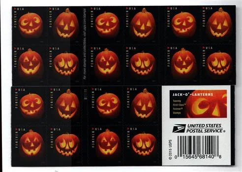 The sheet of 20 Stamps features four different photographs of jack-o??-lanterns. The jack-o??-lanterns were carved by Paul Montanari and photographed by Sally Andersen-Bruce. The Stamps were designed by art director Derry Noyes.