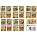 The art for these Stamps was inspired by vintage shipping crate labels, seed packets, and catalogs inspired.??Each stamp in the set was designed and drawn by Michael Doret.